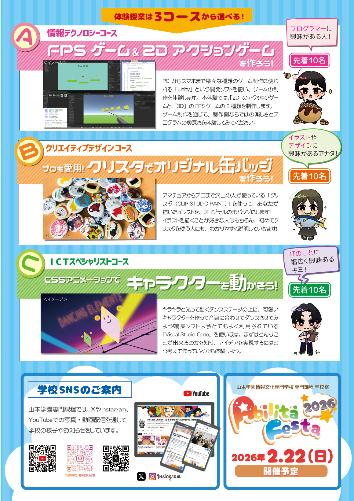 ※こちらは「高校生・社会人」の方が対象の体験入学です。