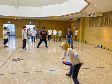 2024年09月20日(金) レクリエーション(ドッヂビー) 自治会の学生が企画したレクリエーションを実施しました! ドッヂビーという、柔らかいフリスビーを使ったドッジボール形式のゲームを行いました。 普通のドッジボールとは違い、力の差が出にくく、ケガもしにくいスポーツです。 学年やクラスの垣根を越えて盛り上がり、とても楽しいイベントとなりました。