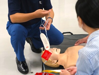 2025年08月25日(月) 救命救急講習 知立消防署の職員の方々にお越しいただき、学生と教員が「普通救命救急講習Ⅰ」を受講しました。 心肺蘇生法やAEDの使用方法など、緊急時に必要な対応を実践的に学びました。 丁寧なご指導のもと、学生たちは真剣に取り組み、救命の大切さを実感しました。 初めて参加した人も、以前受講した人も、命を守るための迅速な対応の重要性を実感する良い機会となりました。 お忙しい中ご指導いただいた知立消防署の皆さま、ありがとうございました。