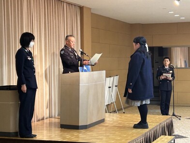 表彰式には、自衛隊愛知地方協力本部長の丸尾様をはじめ、自衛隊の方々にご来校いただきました。