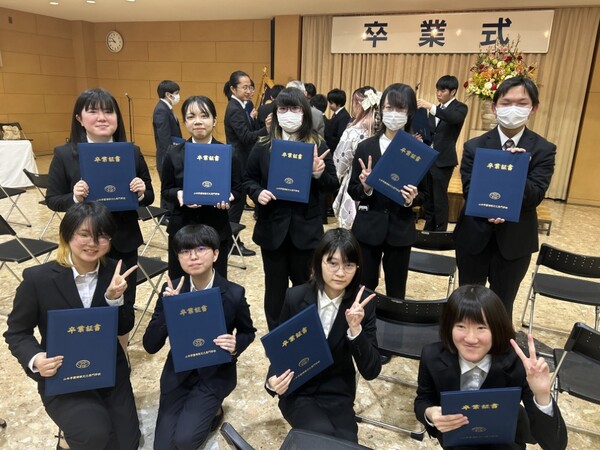 2026年03月12日(木) 卒業式 穏やかな春の日差しに包まれ、2025年度 卒業式を挙行いたしました。 保護者の皆様にもたくさんご臨席いただき、卒業生一人ひとりが引き締まった表情で卒業証書を受け取りました。 式後の写真撮影の時間には、友人や先生方とともに思い出を残し、笑顔あふれるひとときとなりました。 また、式の最後には在校生が温かい拍手で卒業生を送り出し、心温まる締めくくりとなりました。 卒業生の皆様、ご卒業おめでとうございます。 皆様のこれからのご活躍を、教職員一同、心よりお祈り申し上げます。