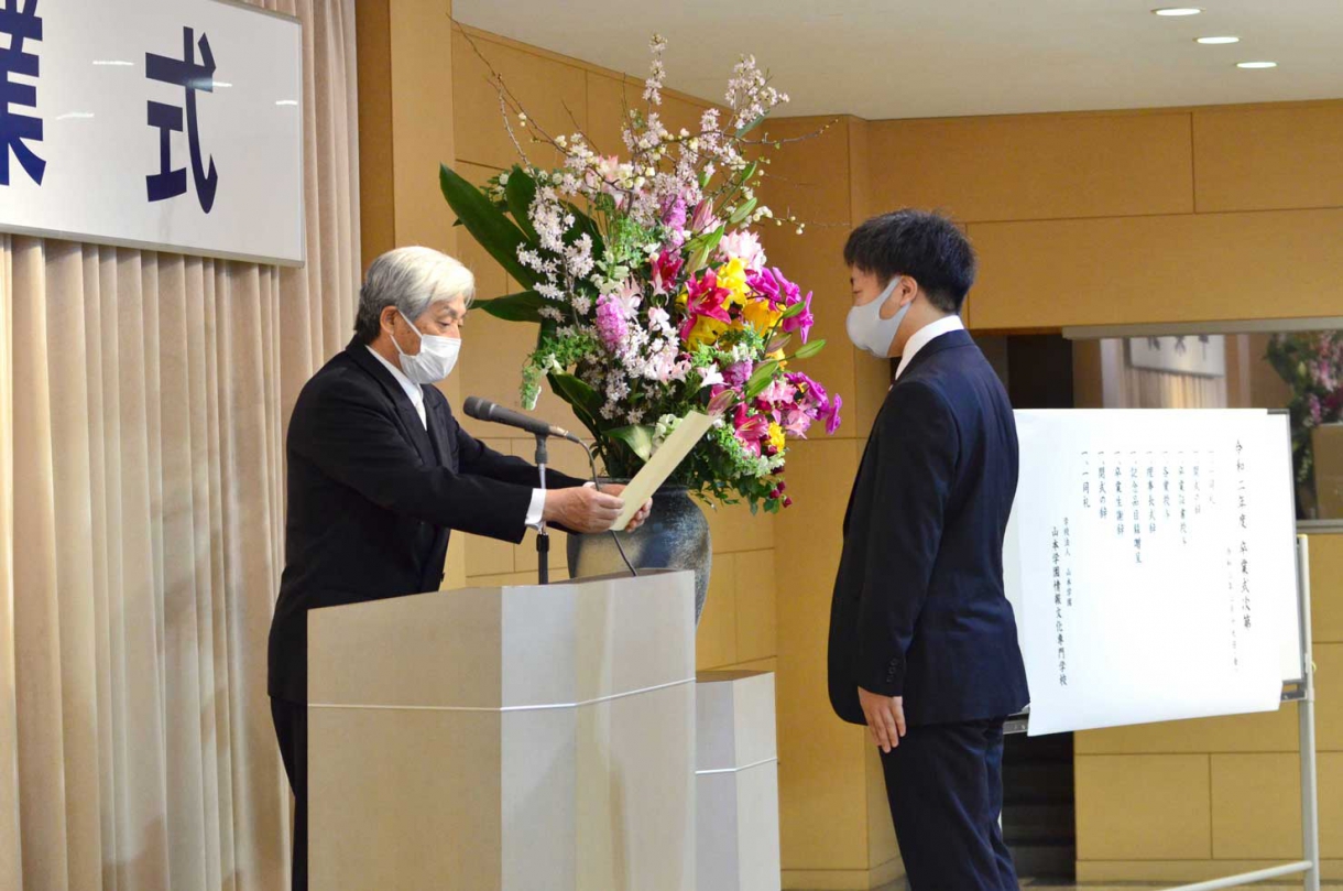 2021年03月19日(金) 令和2年度 卒業式 令和2年度 卒業式を挙行致しました。 感染症対策を徹底し、マスク着用、一部短縮での卒業式となりましたが、 天候にも恵まれ、保護者の方々にもご参列頂き、大変良い式となりました。 卒業生の皆様、ご卒業おめでとうございます。 皆様の今後のご活躍を、教職員一同、心よりお祈り申し上げます。