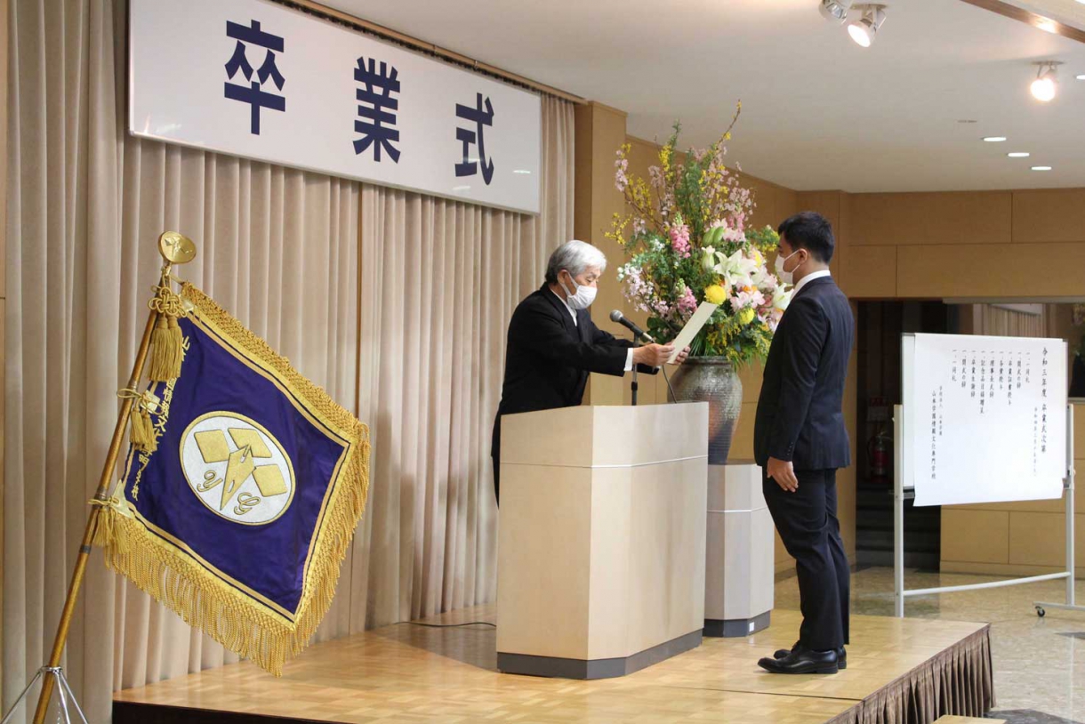 2022年03月15日(火) 令和3年度 卒業式 令和3年度 卒業式を挙行致しました。 今年度もマスク着用、短縮での卒業式となりましたが、天候にも恵まれ、大変良い式となりました。 「卒業生の皆様、ご卒業おめでとうございます。教職員一同、心よりお祝い申し上げるとともに、今後のさらなる活躍を願っております。」